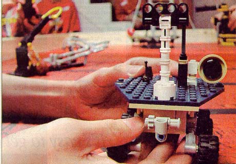 The robots are fit with devices -- all made of LEGOs --